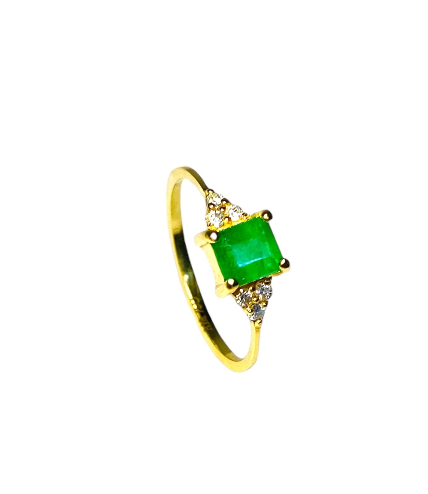 ANILLO ORO 18K ESMERALDA CUADRADA Y 6 DIAMANTES 1.5mm (tiene certificado de laboratorio gemológico)