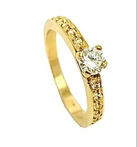 ANILLO ORO 18K CIRCON CENRAL DE 4MM Y DIEZ CIRCONES DE 1.3MM EN LOS LATERALES, UÑAS, PESA 3.4 GRAMOS.