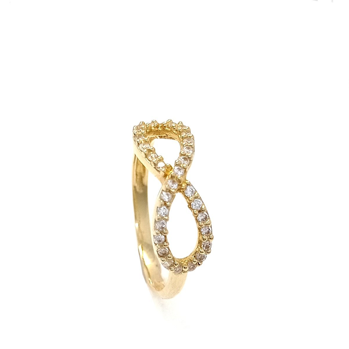 Anillo oro 18k y circones infinito, su peso es 2.7g y su ancho de 2.15 mm es fabricado en todas las tallas