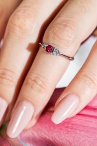 Anillo Oro Blanco 18k Rubi y Diamantes cantidad