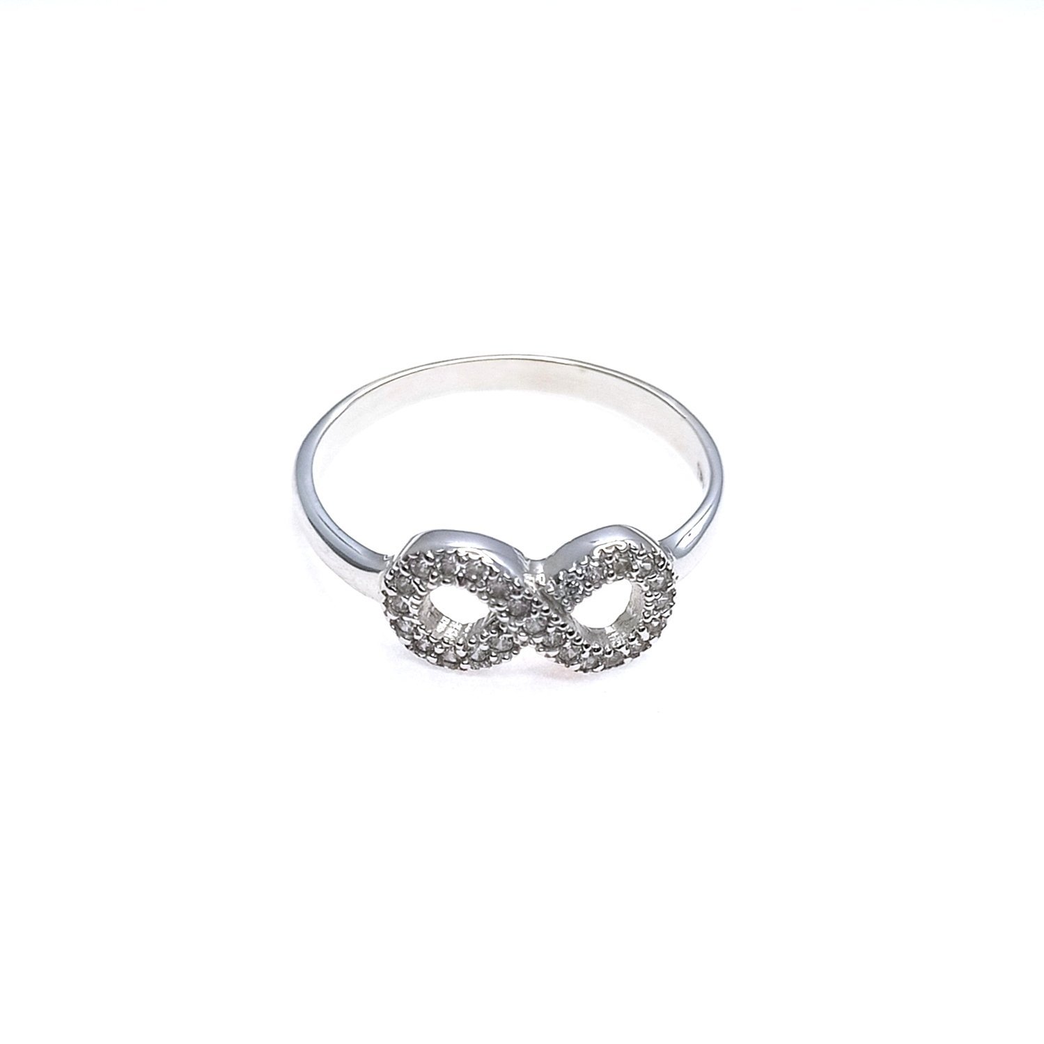 ANILLO ORO BLANCO 18K INFINITO CIRCONES, PESA 2 GRAMOS.
