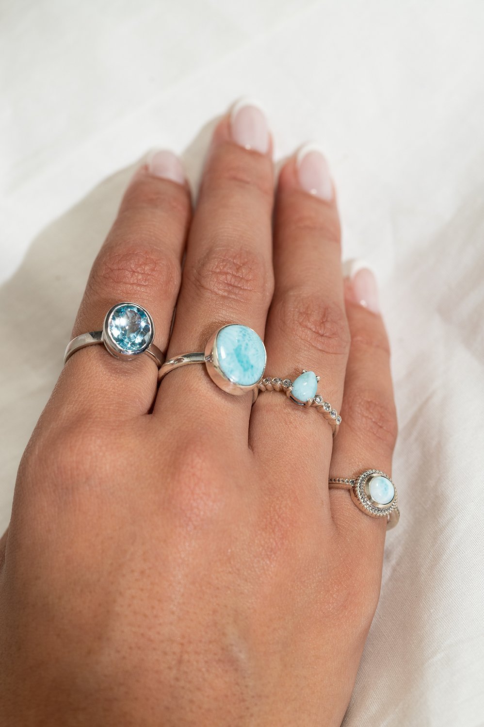 Anillo Plata Larimar circulo cantidad