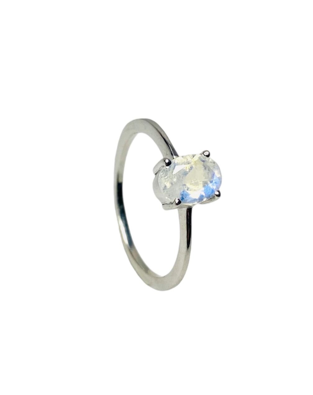 ANILLO PLATA PIEDRA LUNA OVALO UÑAS