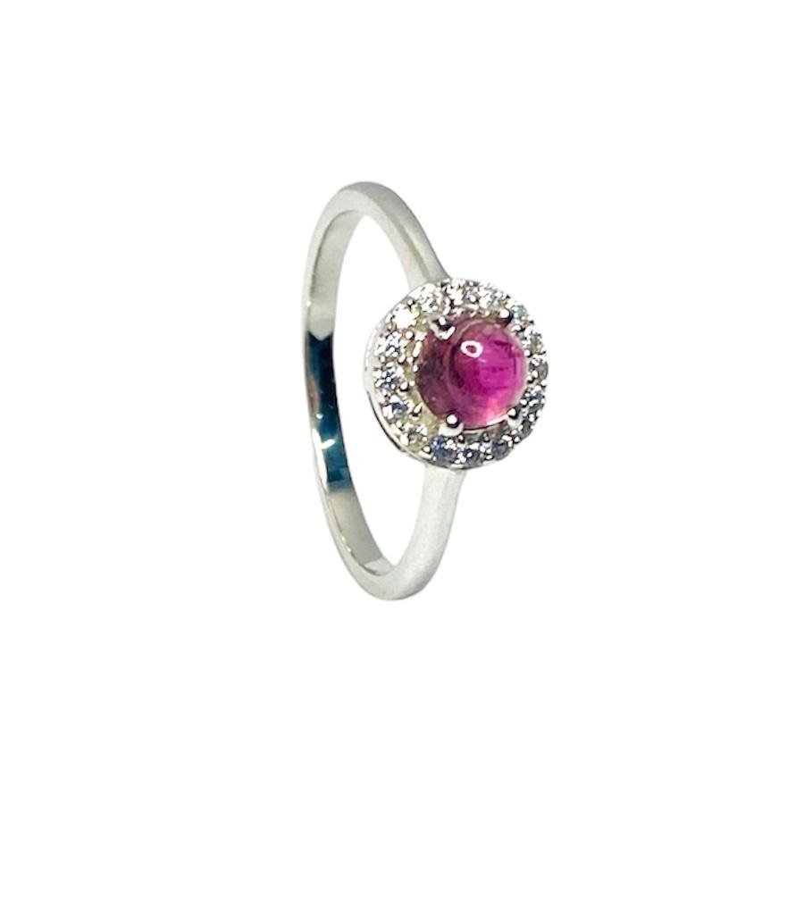ANILLO PLATA TURMALINA REDONDA Y CIRCONES.