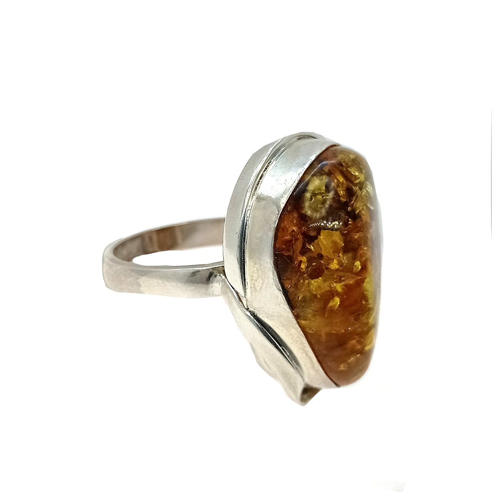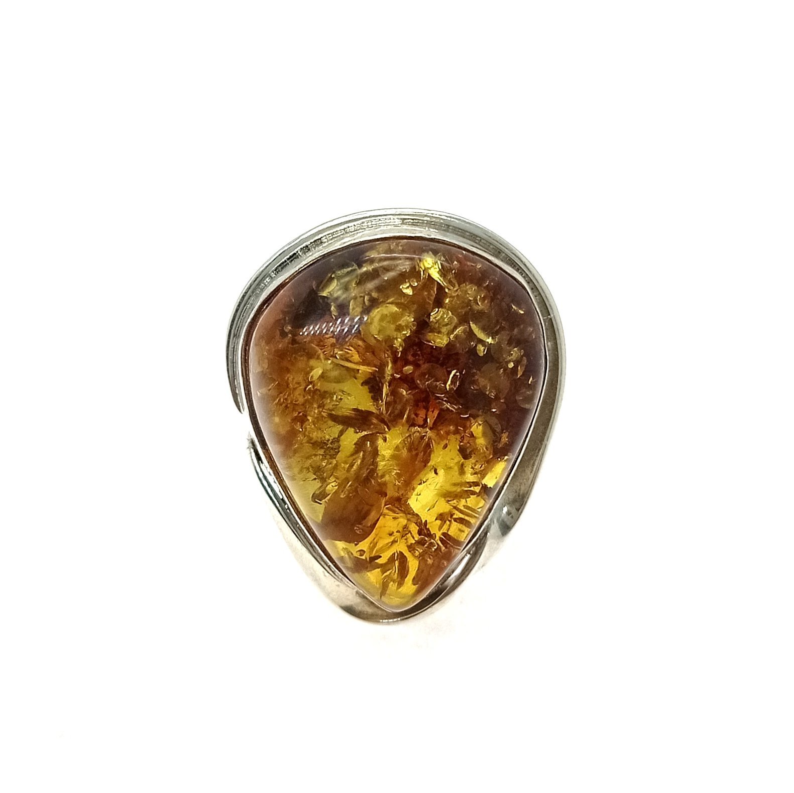 Anillo plata y resina de ambar corte gota, fabricado en todas las tallas