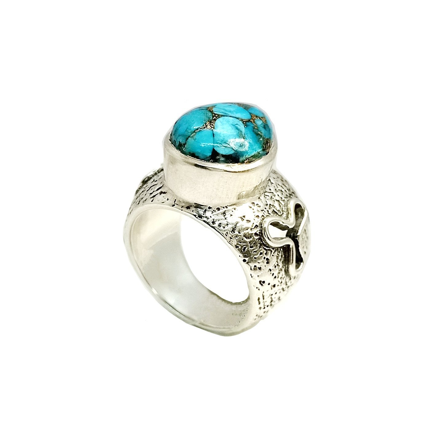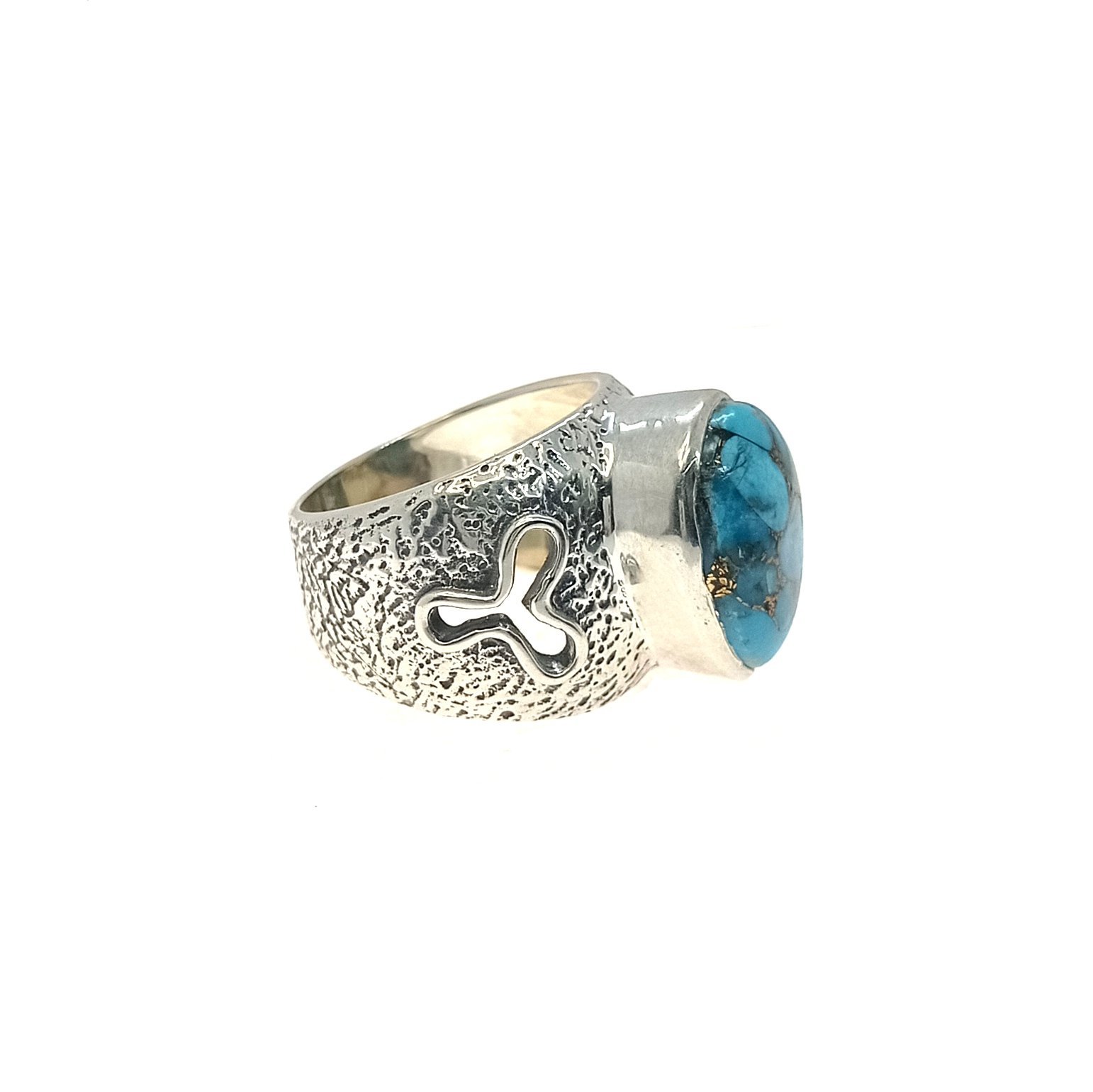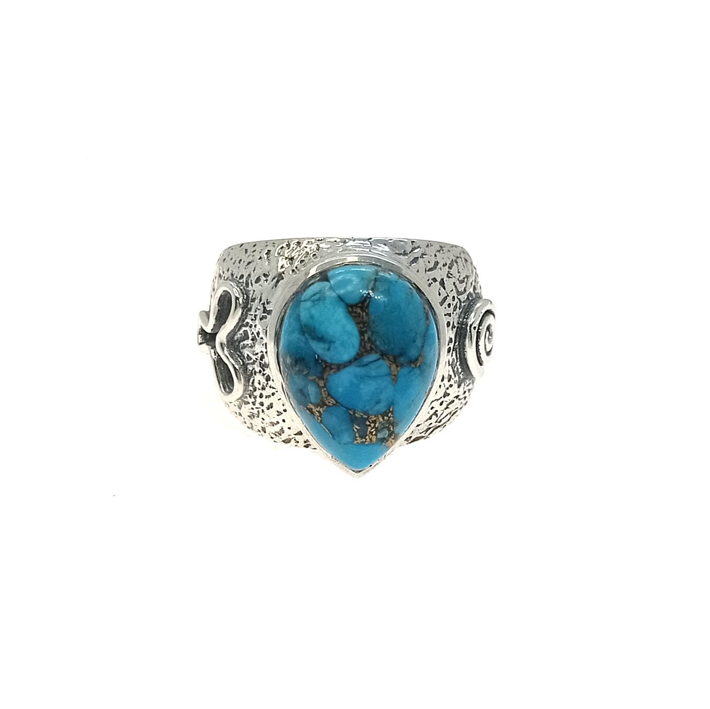 Anillo plata y turqueza cobre corte gota, fabricado en todas las tallas