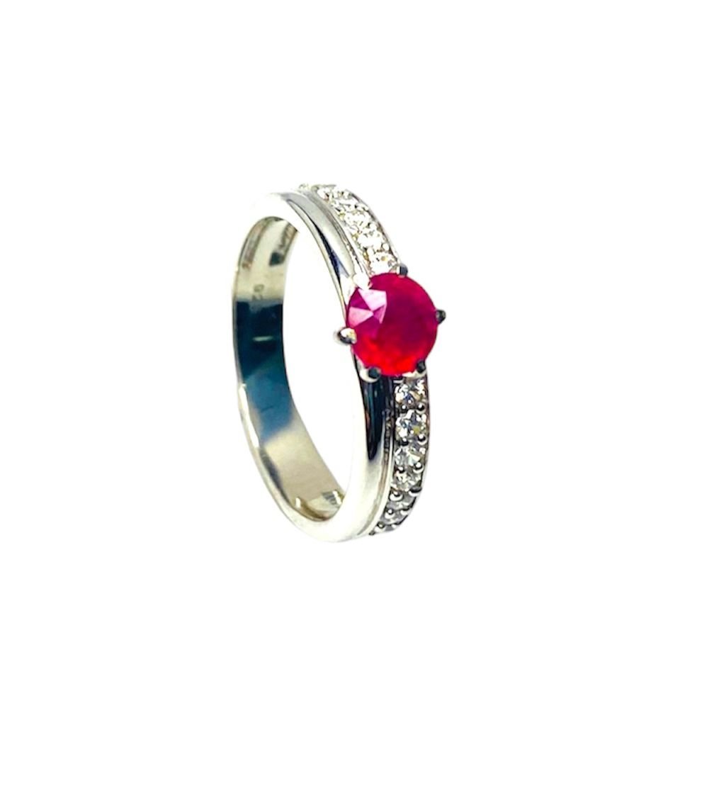ANILLO SOLITARIO PLATA RUBY 5mm, HILERA DE CIRCONES