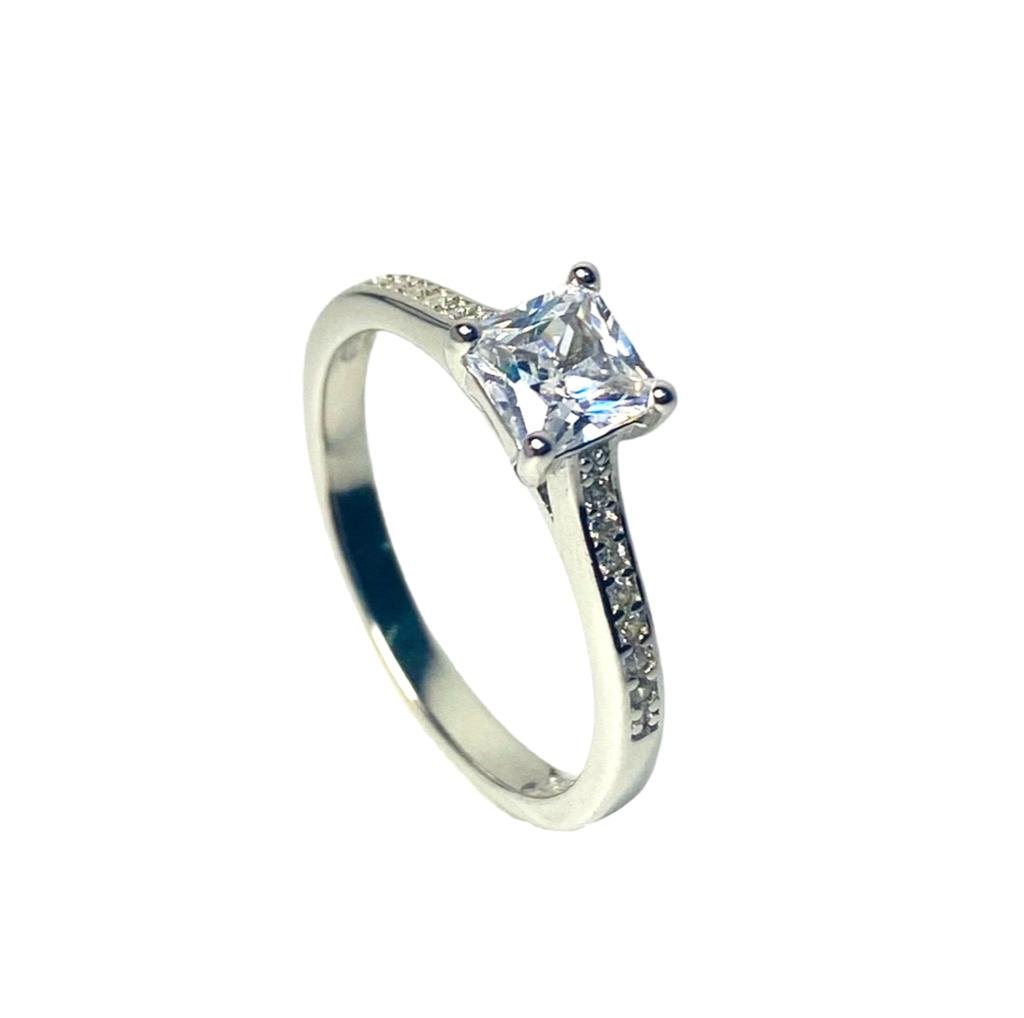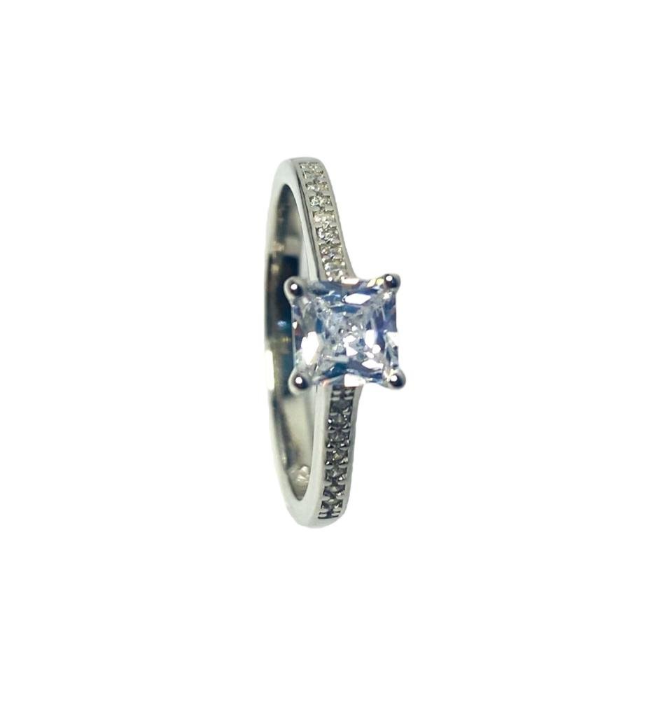 ANILLO PLATA CIRCON RECTANGULAR Y CIRCONES LATERALES