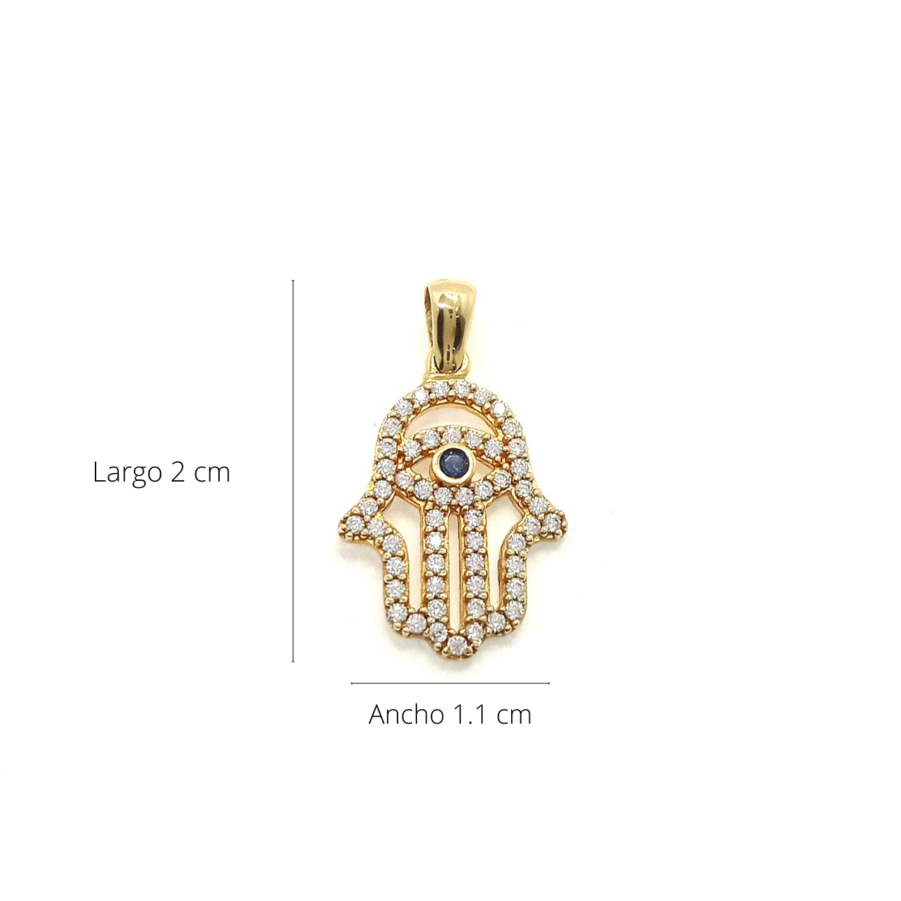 Dije oro 18k y circones mano hamsa, su peso 1.4g