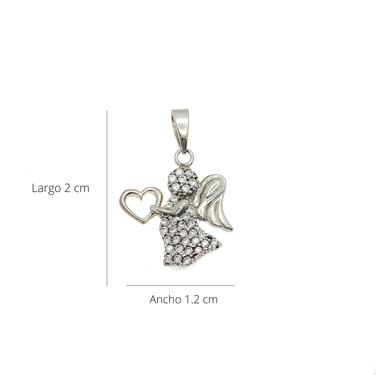 Dije oro blanco 18k y circones angel, su peso 1.3g