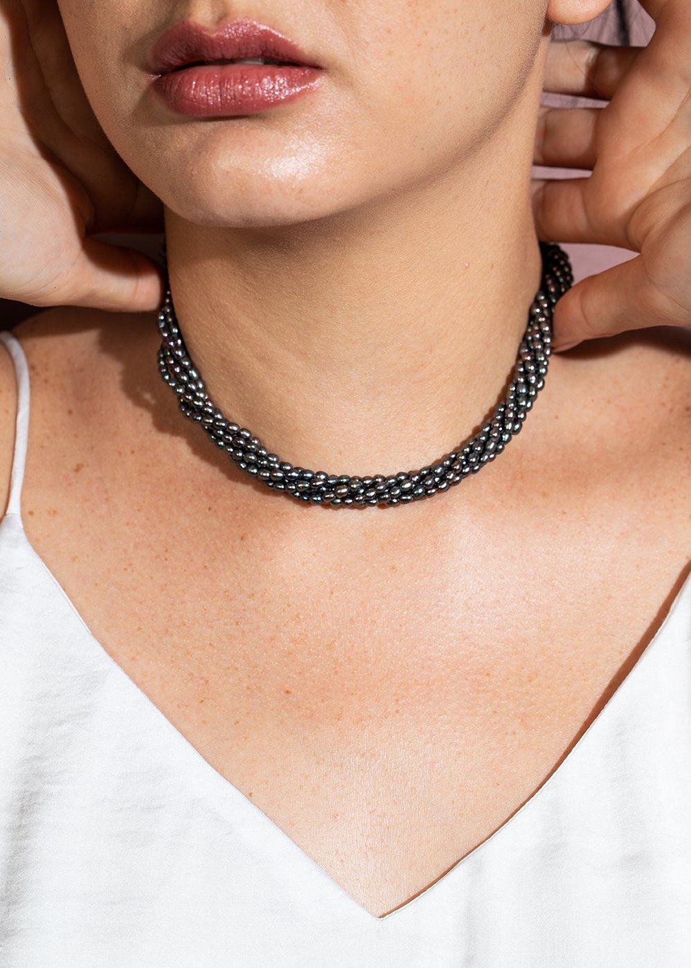 GARGANTILLA ORO 18K PERLA CULTIVADA LAVANDA GRIS SEIS VUELTAS 40cm