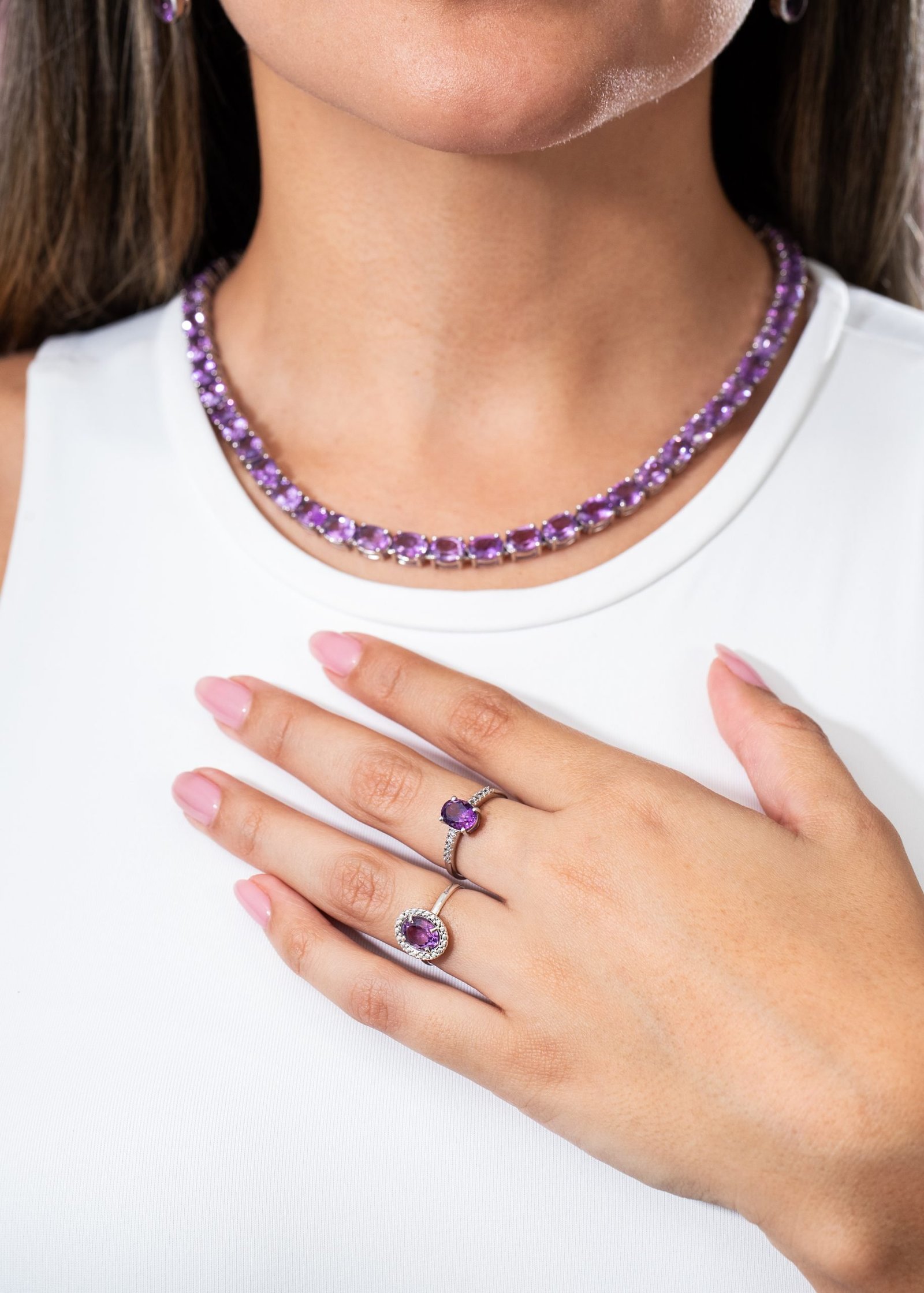 GARGANTILLA PLATA AMATISTA (ovalos 8mm)