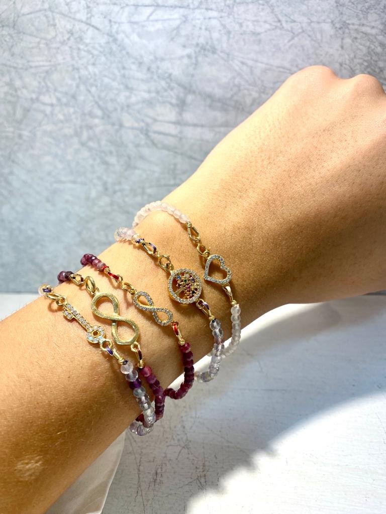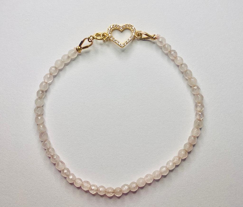 Pulsera Oro 18k Corazón y Cuarzo rosa cantidad